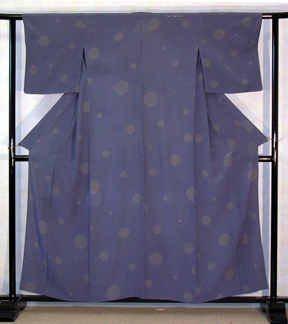 紋紗地に大小の丸を帽子絞りで括った着物です